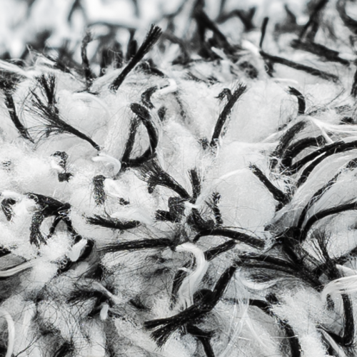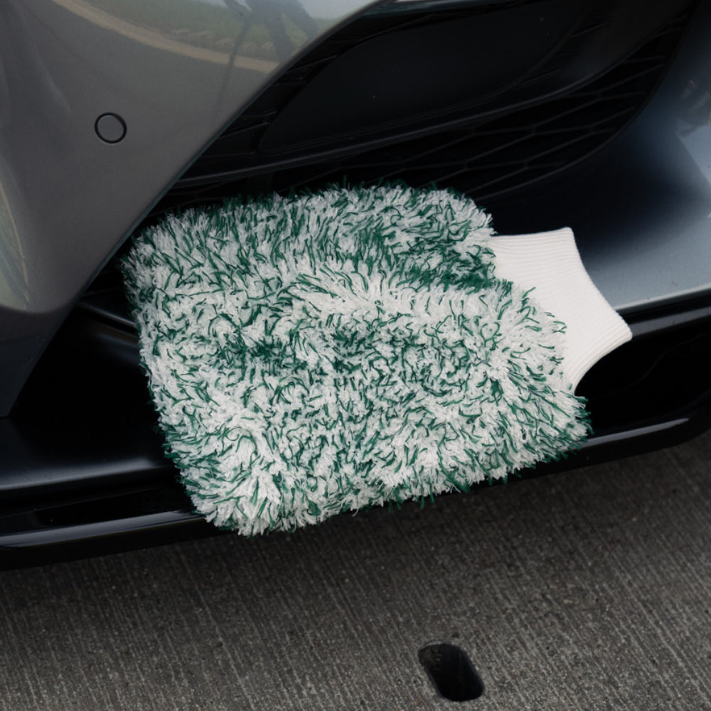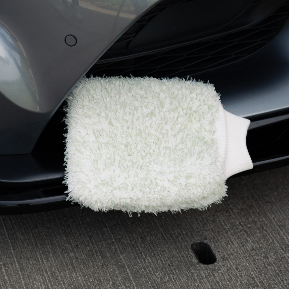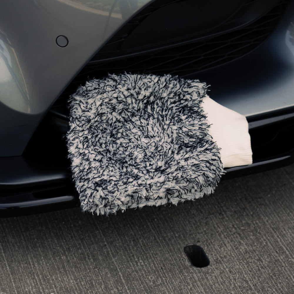 Der Handschuh kommt im zeitlosen schwarz weiß, ist sehr weich und kann durch seine flauschigen Fasern extrem viel Schmutz aufnehmen.